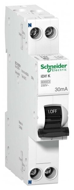 Automatic residual current switch 2p C 16A 30mA type AC 6kA iDif K 1mod. Schneider Electric A9D63616, 1 piece