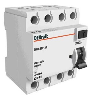 Differential load switch VDT UZO-03 4 poles, 63A, Type AC, 30mA | code. 14081DEK | DEKraft 1pc.