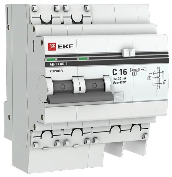 Automatic differential current switch 2p 4mod. C 16A 30mA type AC 4.5kA AD-2 PROxima EKF