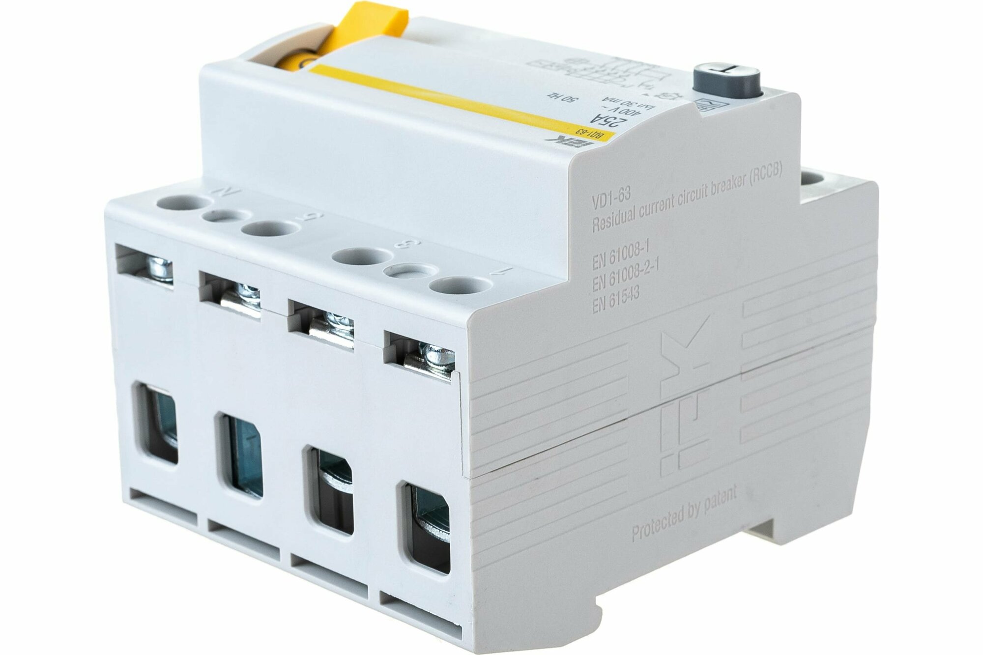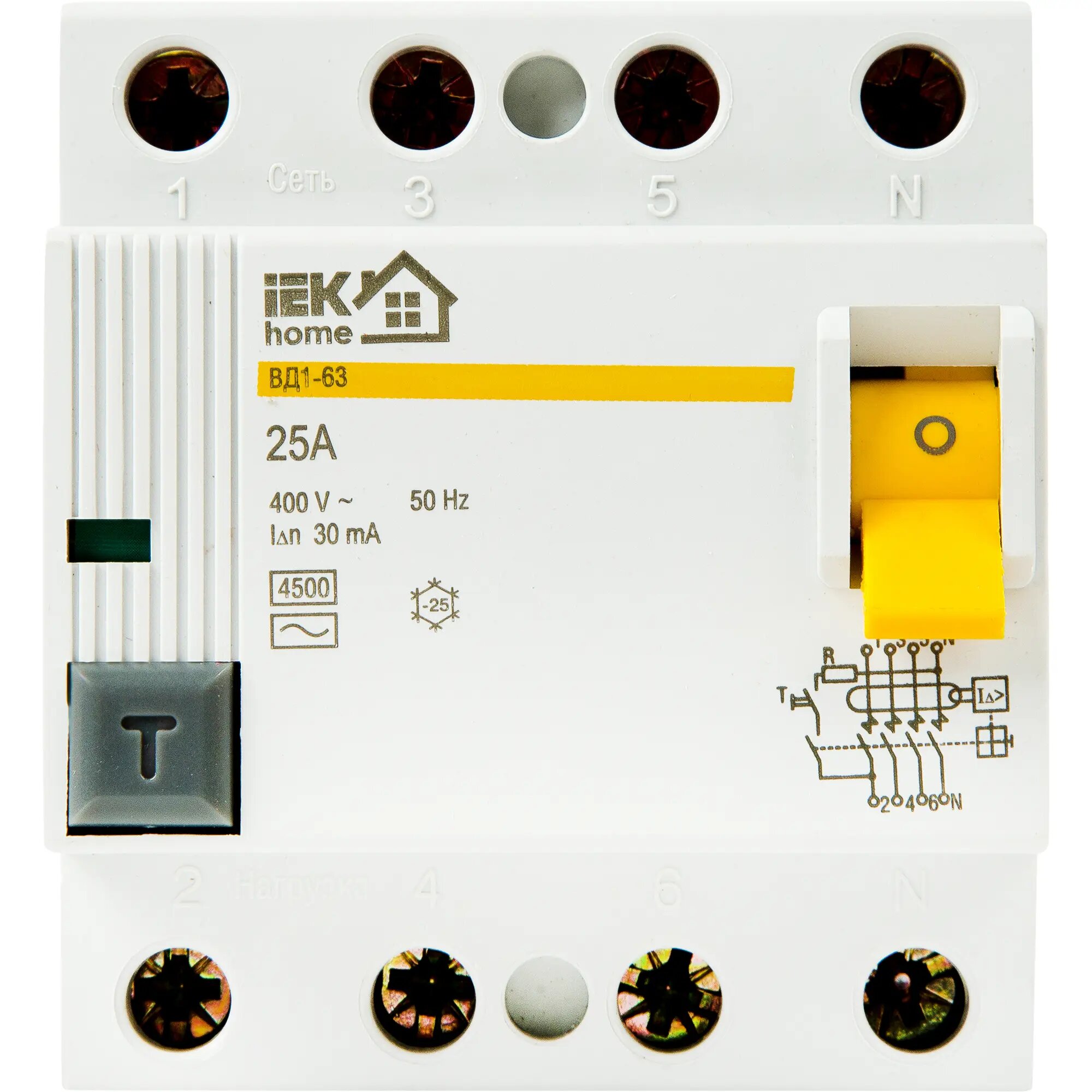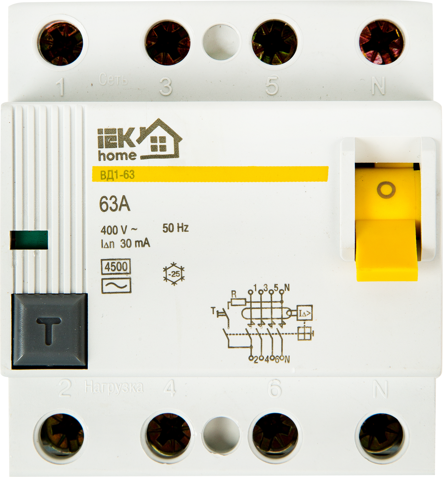 Leakage current: 30 mA, number of poles: 4, rated voltage: 380 V, number of modules: 4, operating principle: electromechanical, type: AC, protection class: IP20