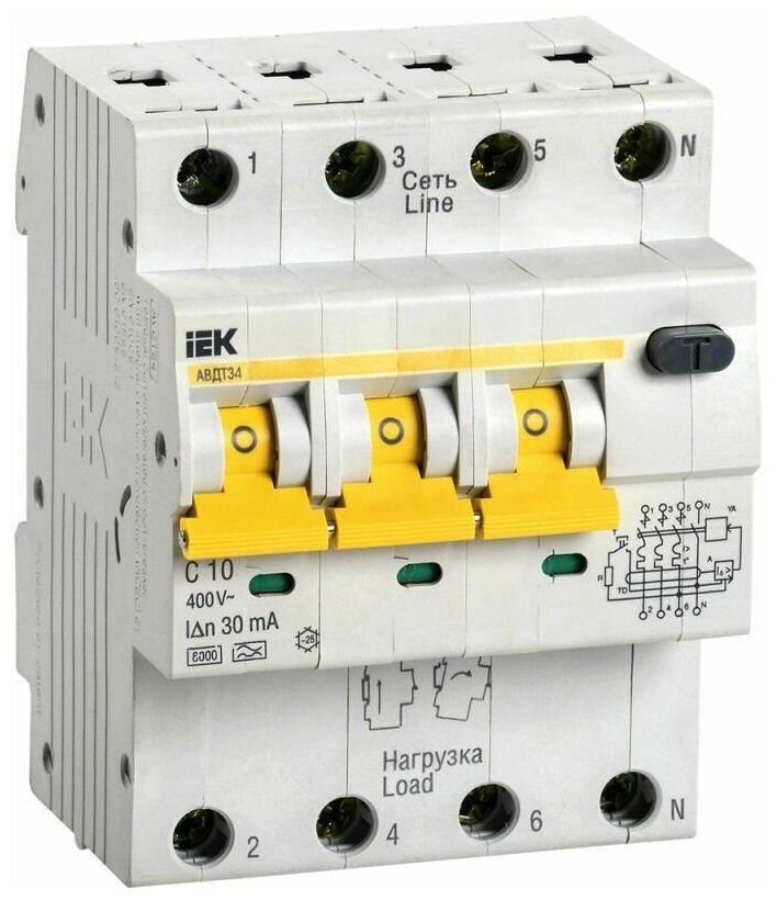 Trip type: C, number of poles: 4, operating principle: electromechanical, residual current device class: A, number of modules: 4, current limiting class: 3, voltage: 400 V, breaking capacity: 6 kA, class