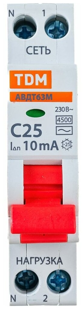 Automatic Residual Current Switch single-module RCBO 63M 2P1P+N C25 10mA 4.5kA type AC TDM