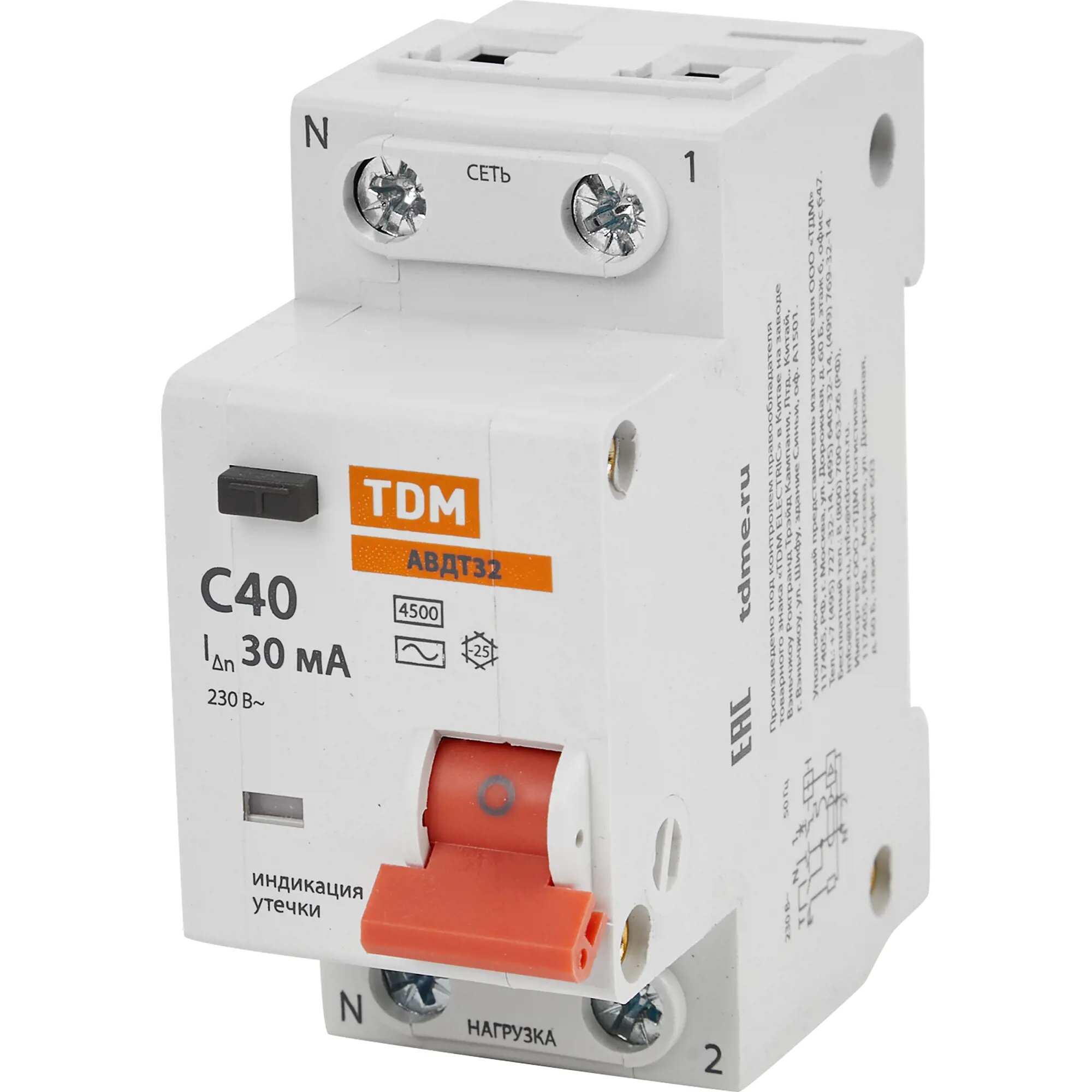 RCBO 32 2P1P+N C16 30mA 4.5kA type AC - Automatic Residual Current Breaker TDM