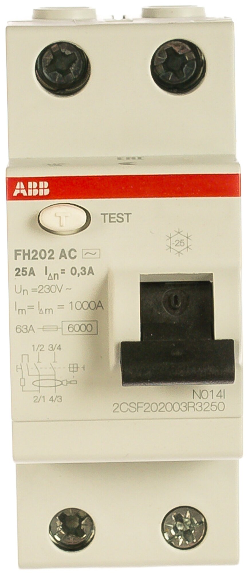 Residual current switch ABB 2 modules FH202 AC-25/0.3 2CSF202003R3250 16024184