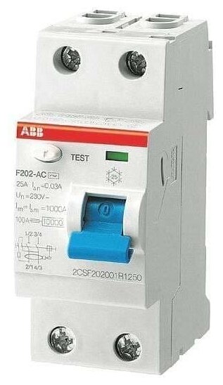 Residual current switch RCD 2p 63A 30mA type AC F202 ABB 2CSF202001R1630, 1 piece