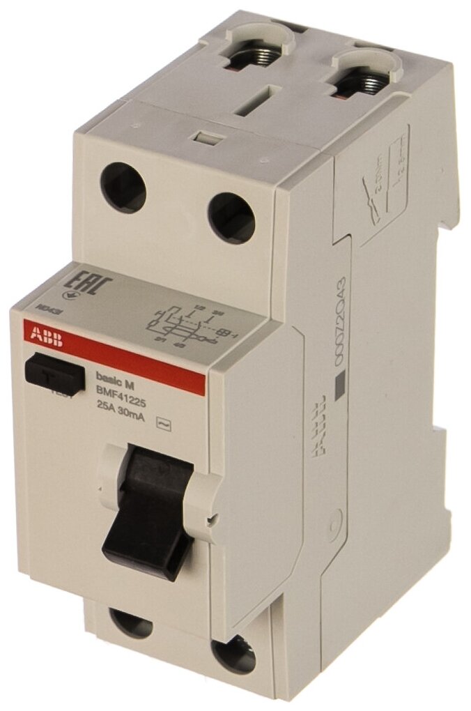 Diff switch current 2p 25A 30mA type AC Basic M BMF41225 ABB 2CSF602041R1250, 1 piece