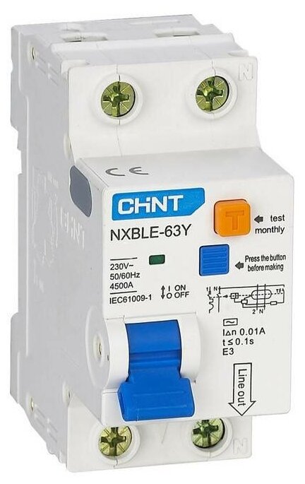 Automatic differential current switch 1p+N C 16A 30mA electronic. type AC 4.5kA NXBLE-63Y R CHINT 105542