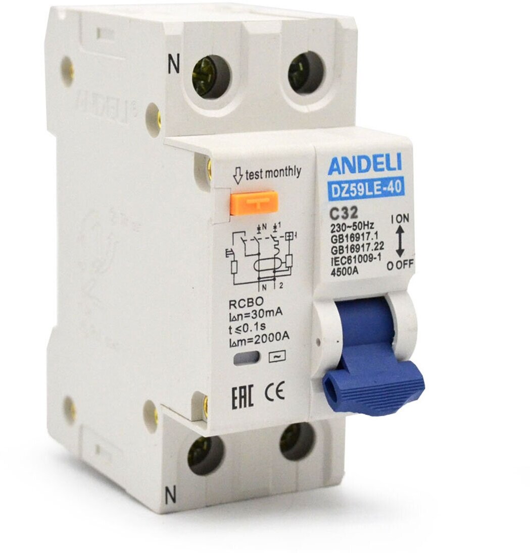 Differential machine Andeli DZ59LE-40 1P 30 mA C 4.5 kA AC electromechanical