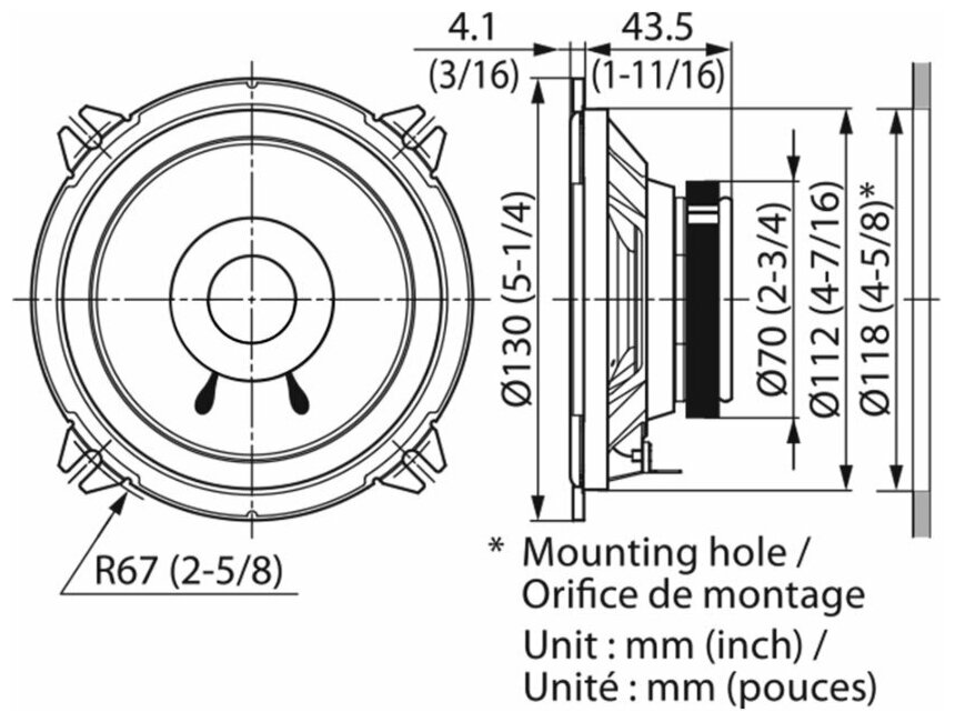 Component acoustics element. Speaker range of mid and high frequencies. Resistance