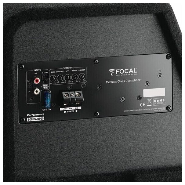 Automatic on/off by the presence of a high-level input audio signal; high-level and RCA outputs 1 pair; FINCH subsonic 20 - 35 Hz; phase adjustment smooth 0...180°; remote bass level adjustment 0…+12 dB; denomination