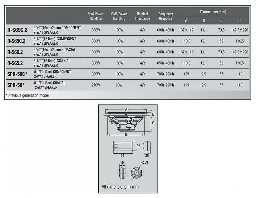 Coaxial speaker oval 15x23 cm 6x9 in. 100 W
