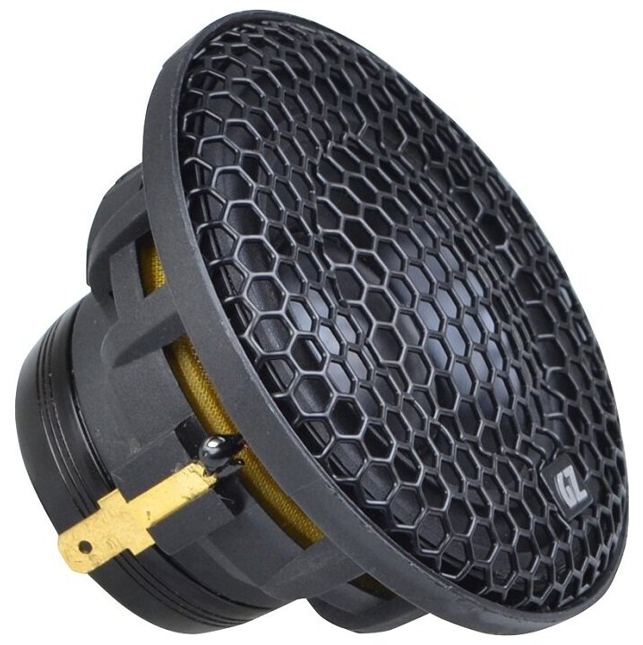 Diffuser material: injection molded polypropylene with titanium coating. Midrange driver: cone, aluminum coated. Tweeter: dome, aluminum coated. Diffuser holder: stamped steel. Resistance
