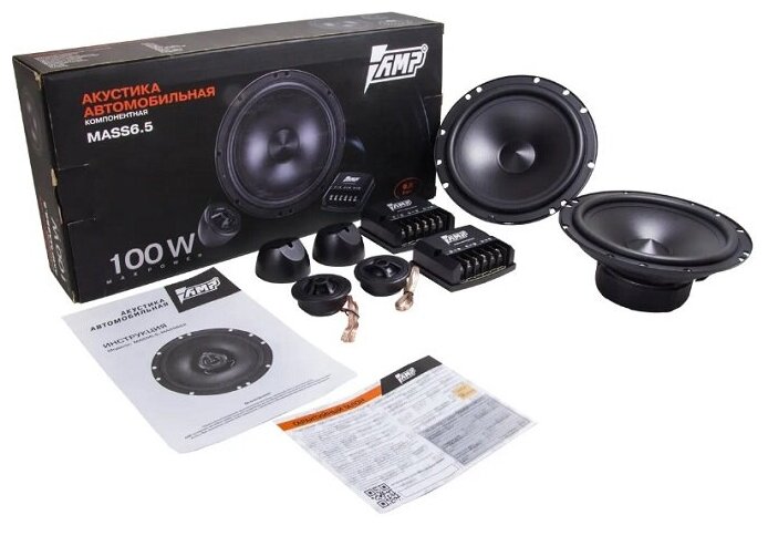 Box, instructions, 2 speakers, 2 tweeters, 2 crossovers