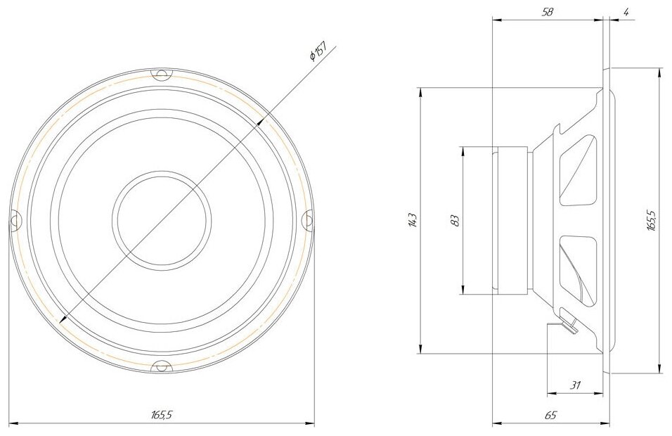 Component speaker 16.5 cm 6 1/2 in. 50 W