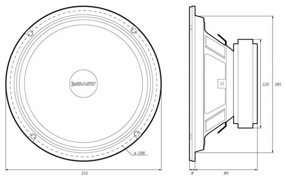 Component acoustics element. Speaker range of mid and high frequencies. Resistance
