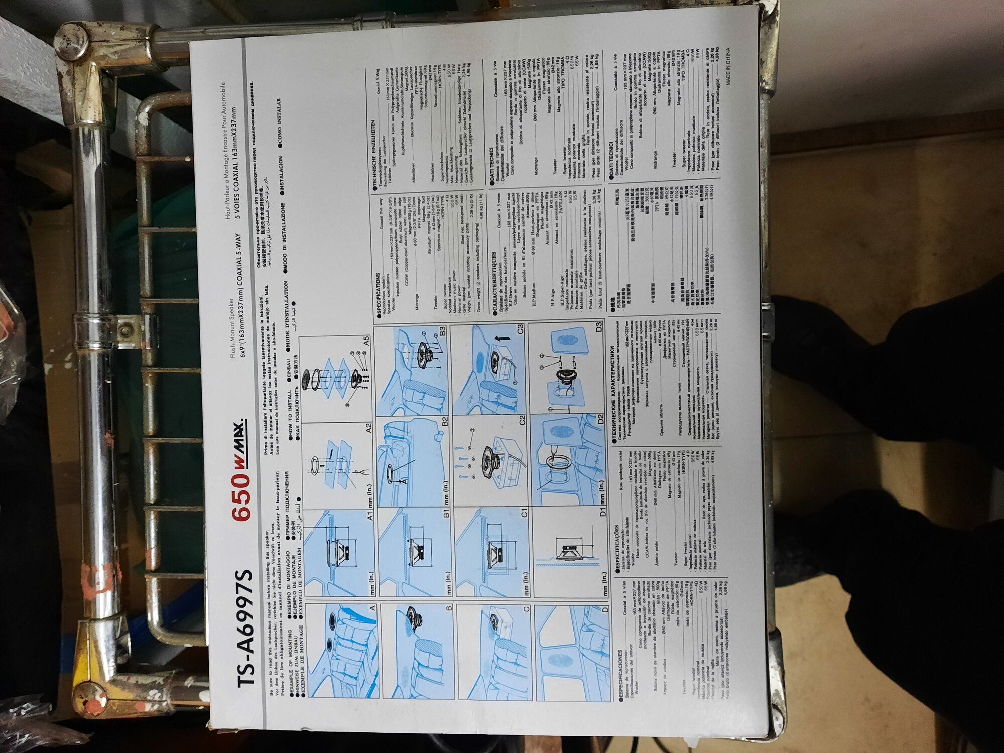 Speakers 2 pcs, protective nets 2 pcs, connection wires, fastenings for screws 8 pcs, screws for acoustics 8 pcs