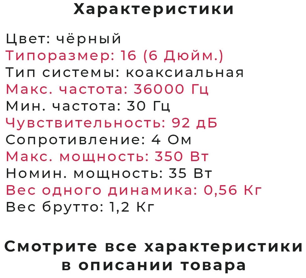 Speakers 2 pcs. Protective nets 2 pcs. Wires for connection. Fastenings for self-tapping screws 8 pcs. Self-tapping screws for acoustics 8 pcs.