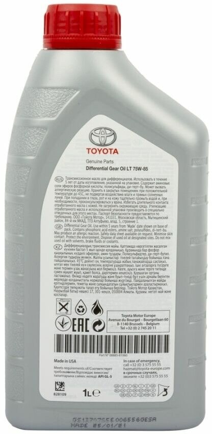 Type: differential, gearbox, composition: synthetic, API standard: GL-5, SAE viscosity: 75W-85, gearbox type: manual