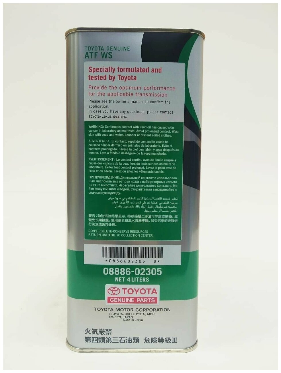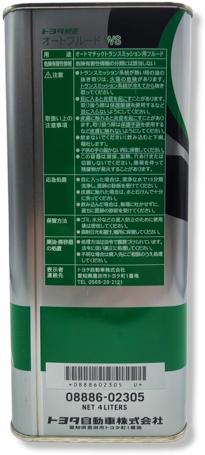 OEM Approvals: Toyota JWS, Toyota JWS 227, Toyota JWS 3309, Toyota JWS 3324, Toyota WS, 00289-ATFWS,00289ATFWS, 08886-02305, ATF WS
