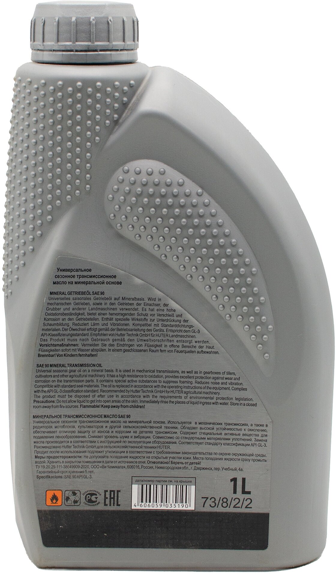 Type: gearbox, reducer, For gearboxes and transmissions, cultivators and agricultural machinery., mechanical transmissions, walk-behind tractor gearbox, composition: mineral, API standard: GL-3, SAE viscosity: 90, coro type
