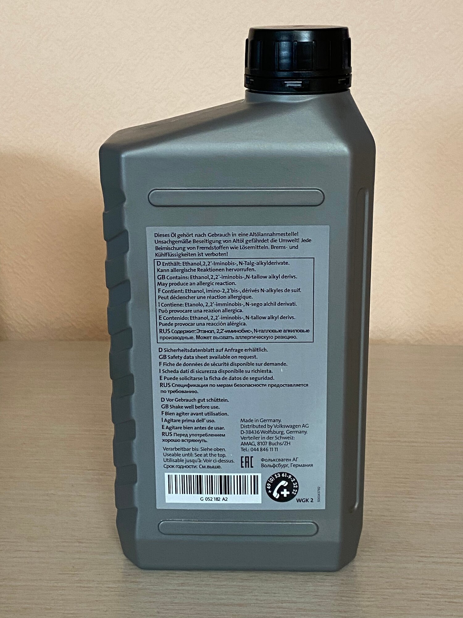 Additional Information: Approvals and specifications: VW G 052 182 A2; ILSAC class GF-5; ACEA class A5/B5; density at +15°C, in grams per cubic centimeter 0.899; viscosity at 40°C 36 mm²/s; flash point 220 °C; pour point ISO 3016 -51 °C