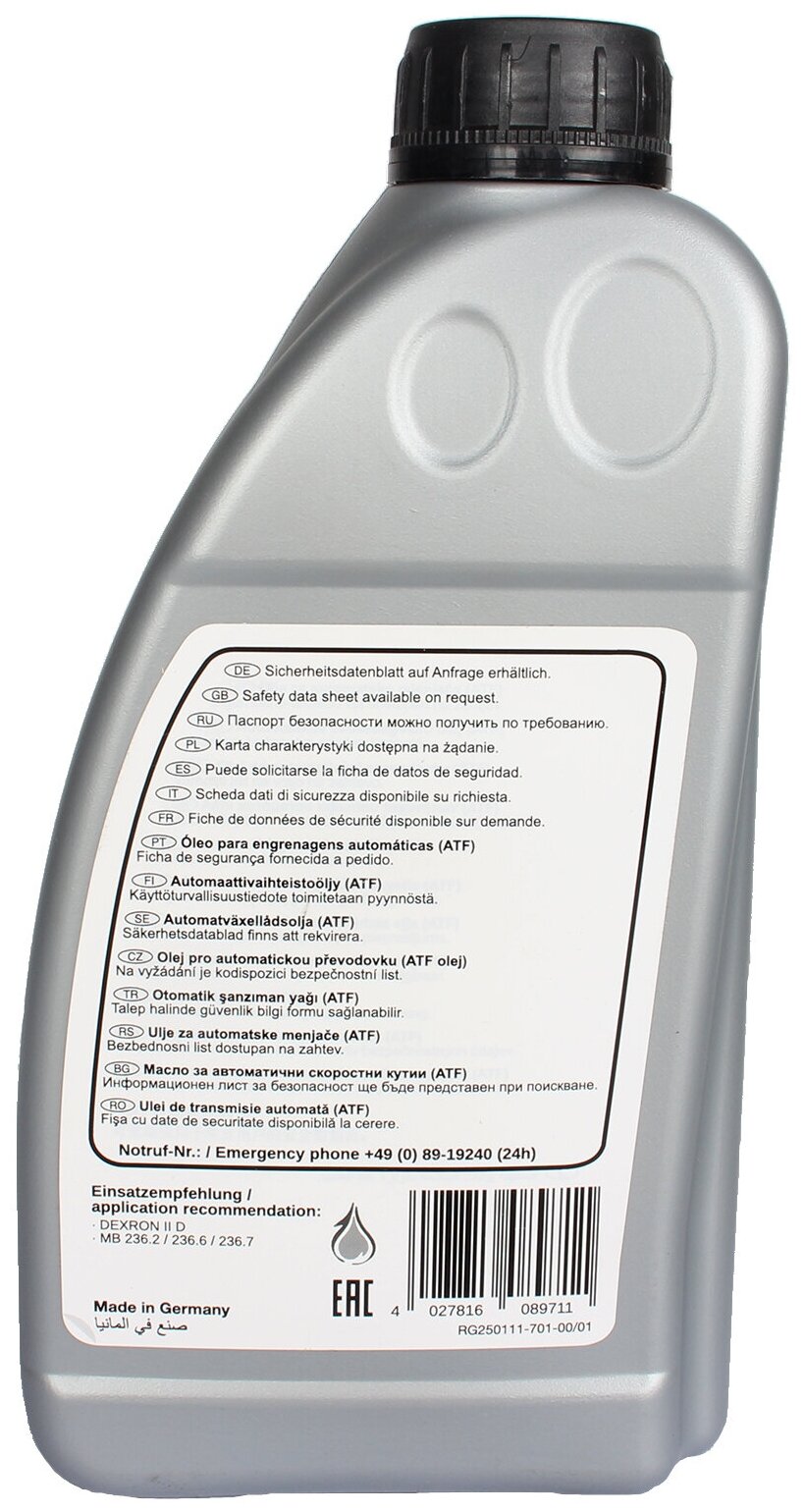 Type: gearbox, composition: synthetic, SAE viscosity: Not subject to SAE classification, gearbox type: automatic