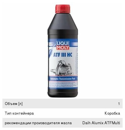 Type: gearbox, composition: HC-synthetic, API standard: ATF III, gearbox type: automatic