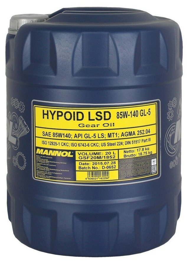 Type: gearbox, manual transmission, Transmission oils, composition: mineral, API standard: GL-5, SAE viscosity: 85W-140, gearbox type: mechanical, hypoid oil