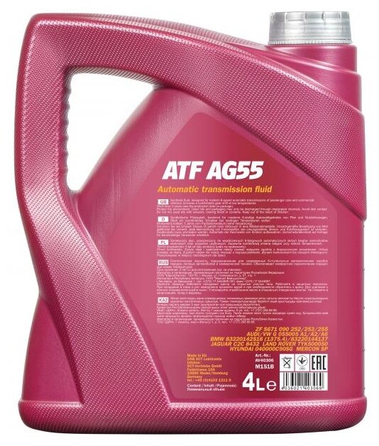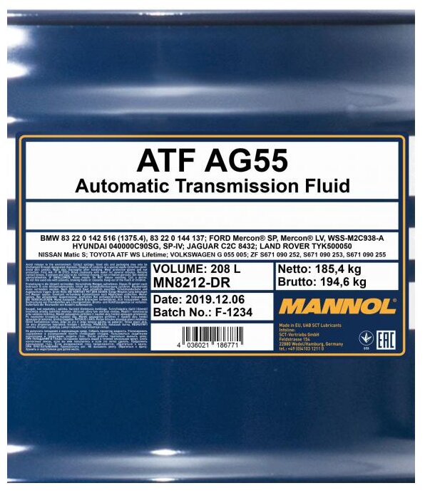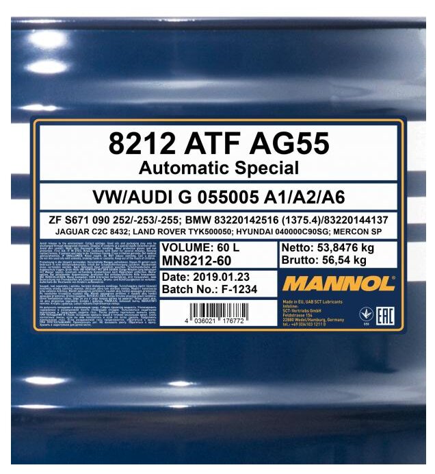 BMW, BMW 1375.4, Ford MERCON SP, Ford Mercon, Hyundai 040000C90SG, Jaguar C2C 8432, Land Rover TYK500050, Mercon, Mercon SP, VW G 055 005, VW G 055 005 A, VW G 055 005 A1, VW G 055 005 A2, VW G 055 005 A6, ZF TE-ML 11BZF TE-ML 11A