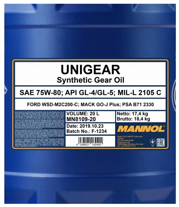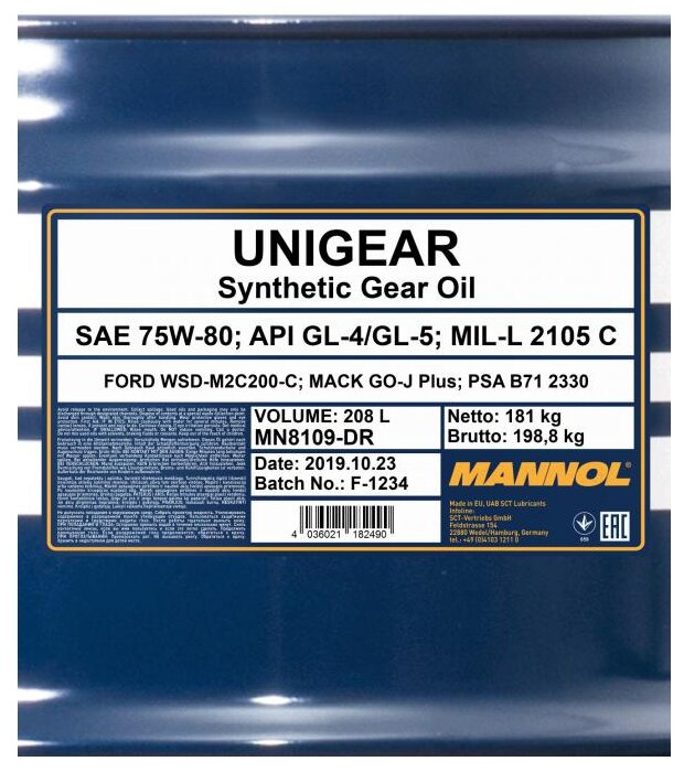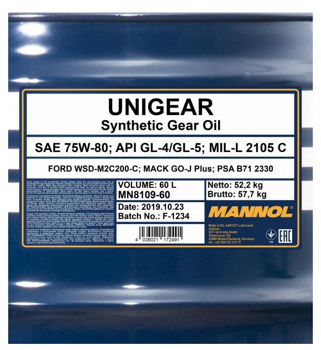 Type: gearbox, manual transmission, Transmission oils, composition: synthetic, API standard: GL-4/5, SAE viscosity: 75W-80, gearbox type: mechanical