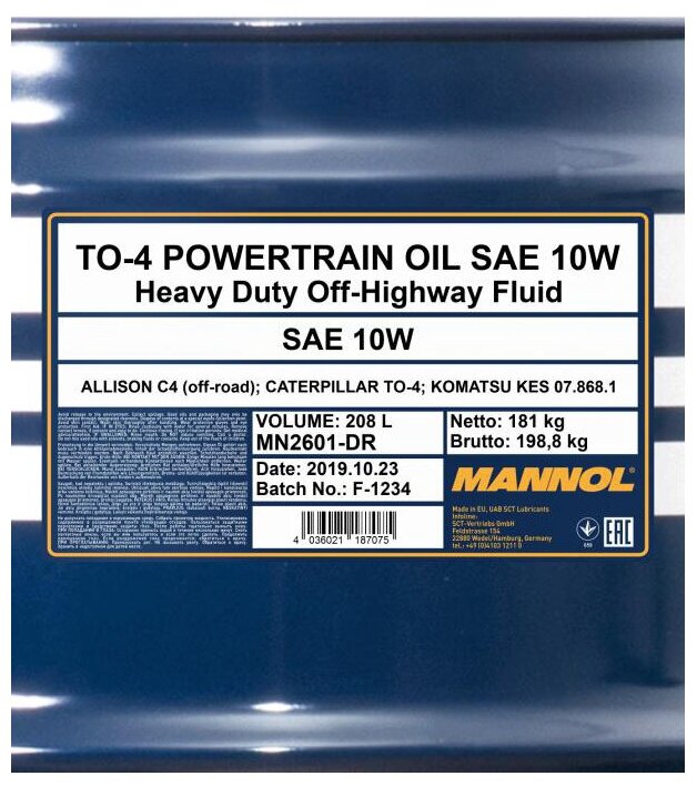 Transmission Mannol TO-4 Powertrain Oil SAE 10W