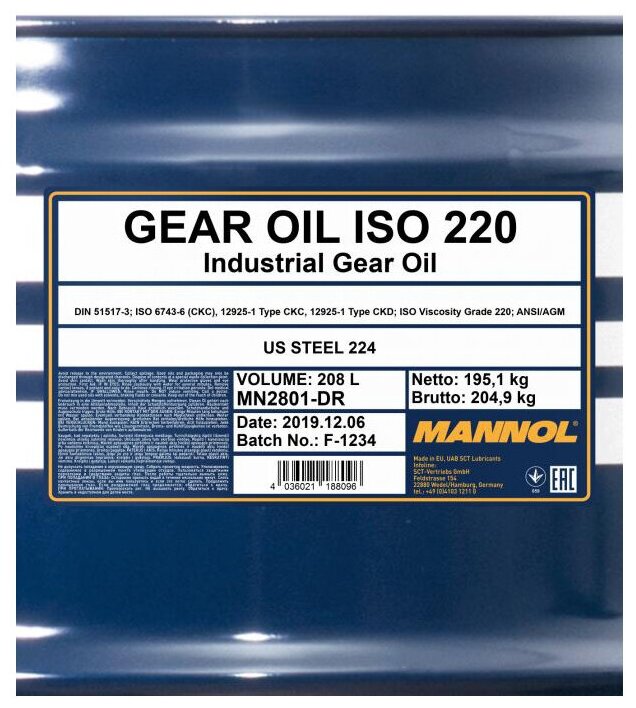 OEM approvals: ISO 220, AGMA 252.04, ISO 12925-1 CKC/CKD, ISO 6743-6 CKC/CKD, US STEEL 224 DIN 51517 Part 3
