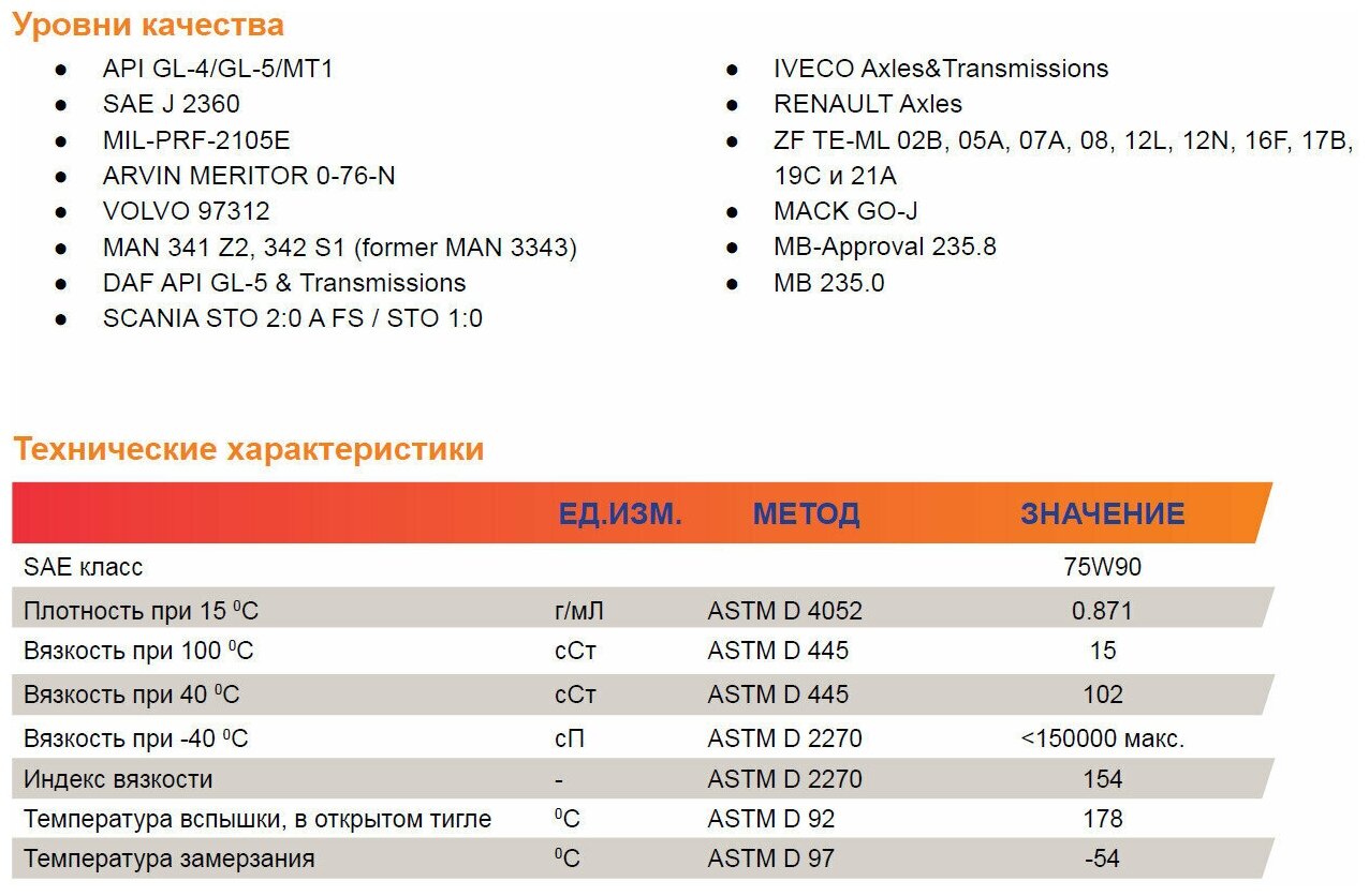 Arvin Meritor Transmission 076-N, DAF, MAN 3343 Type S, MAN 341 Type Z2, MAN 342, MAN 342 Type S1, MB 235.0, MB 235.8, MIL-PRF-2015E, MIL-PRF-2105E, Mack GO-J, Renault, SAE J2360, Scania STO 1:0, Scania STO 2:0 A, Scania STO 2:0A, Volvo 97312, ZF TE-ML 02