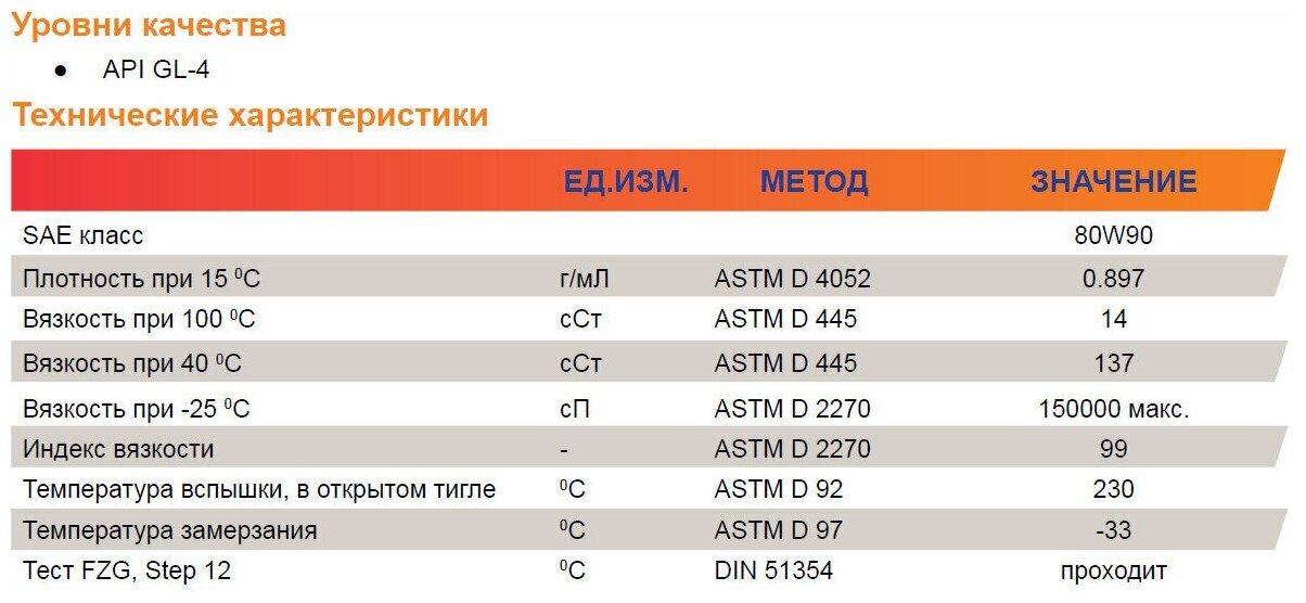 Type: gearbox, API standard: GL-4, SAE viscosity: 80W-90, gearbox type: manual
