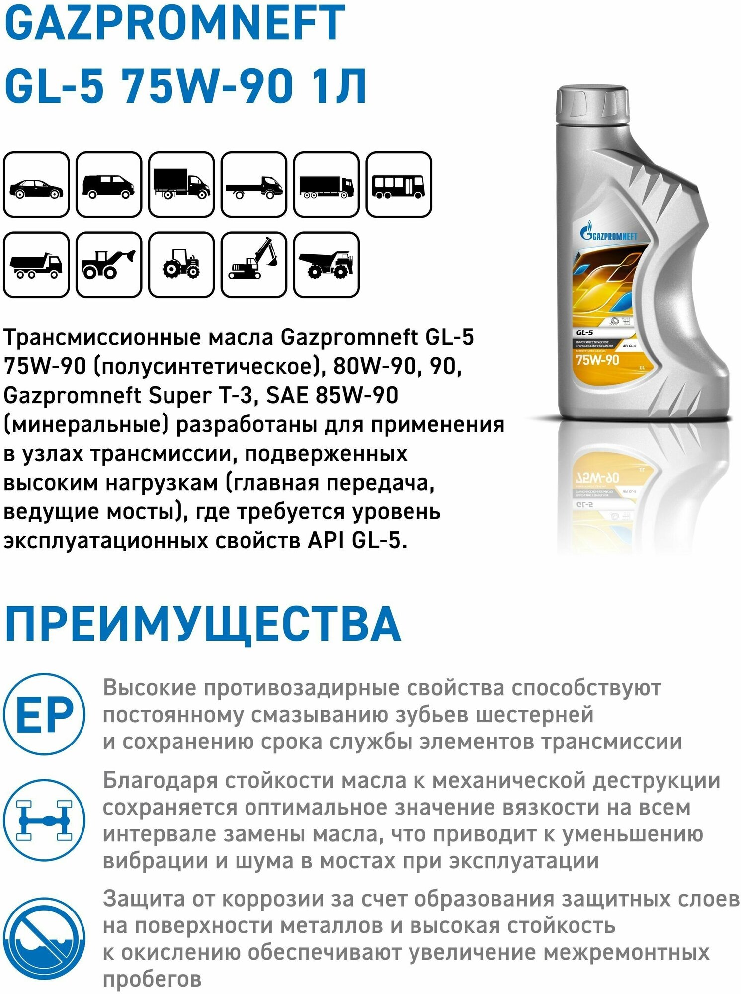 Type: differential, gearbox, reducer, Transmission oils, transmission units, Axles, transmission, composition: semi-synthetic, API standard: GL-5, SAE viscosity: 75W-90, gearbox type: automatic, manual, Var