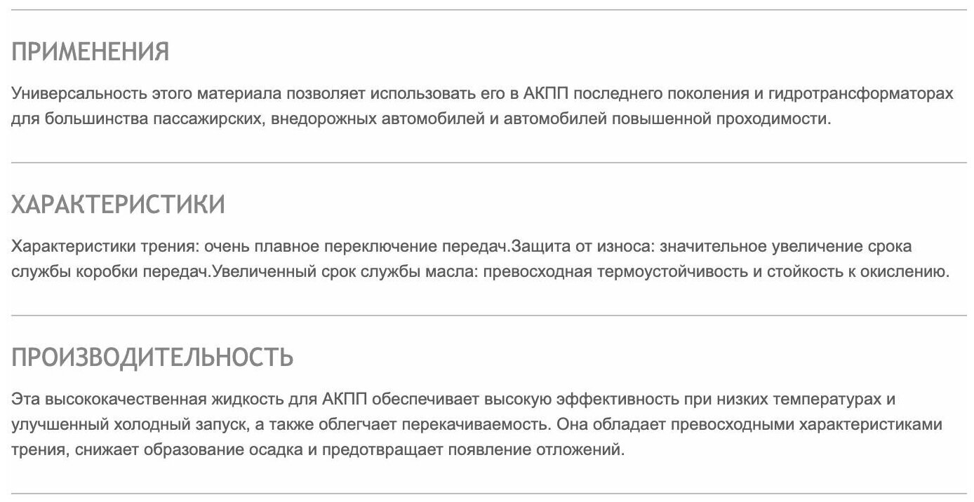 Description: Type: gearbox, Transmission oils, composition: synthetic, API standard: EcoTech, gearbox type: automatic