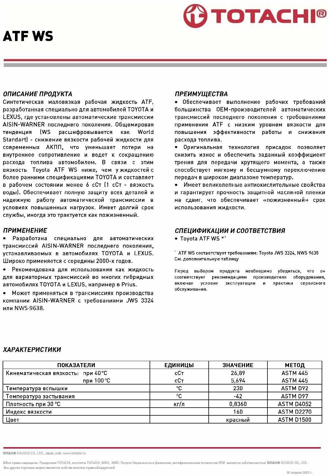 Transmission TOTACHI ATF WS, synthetic, 4 l