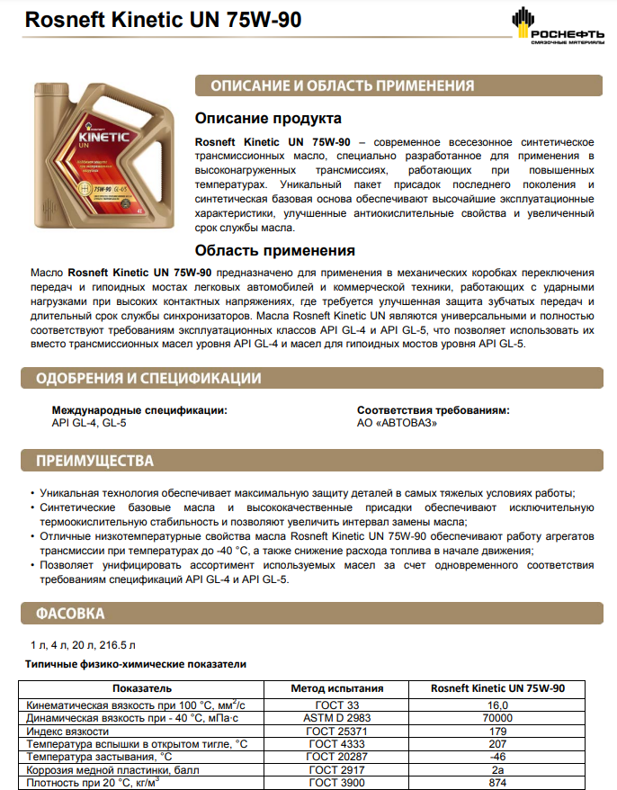 PJSC "AvtoVAZ", GL-4GL-5, PJSC "AVTOVAZ"