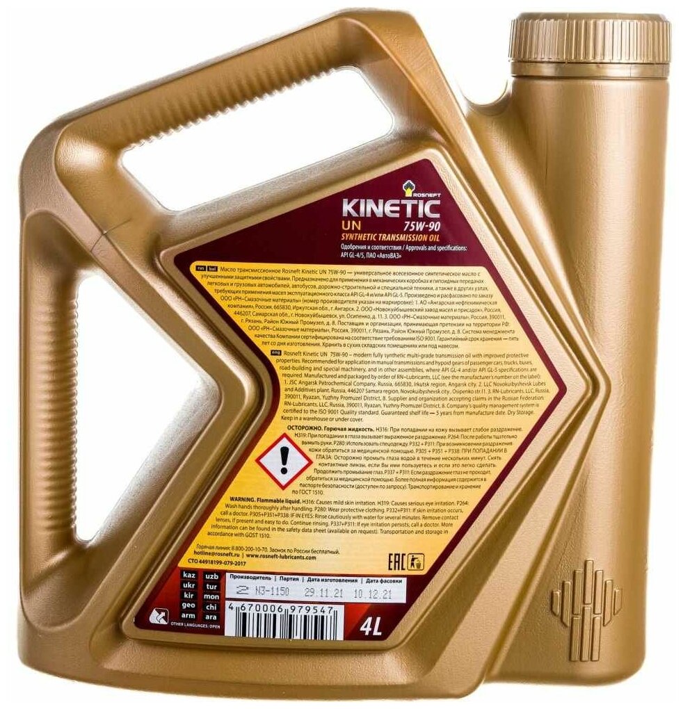 Type: differential, gearbox, reducer, For manual transmission, Transmission oils, composition: synthetic, API standard: GL-4/5, SAE viscosity: 75W-90, gearbox type: mechanical, hypoid oil
