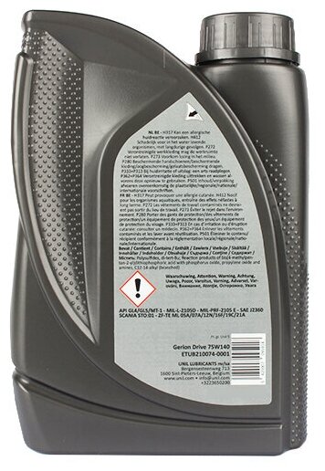 Type: gearbox, composition: synthetic, API standard: GL-4/5, SAE viscosity: 75W-140, gearbox type: mechanical