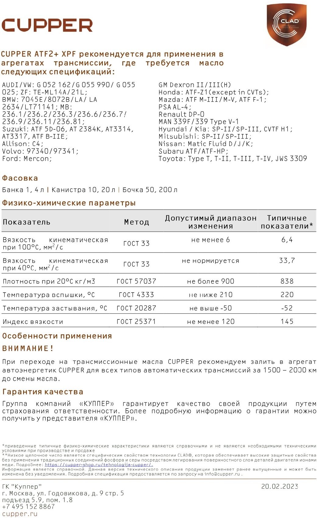 Allison TES 295, Allison TES 389, BMW 7045 E, BMW ETL-8072B, Ford WSS-M2C 922-A1, Ford WSS-M2C 924-A, GM Dexron II, GM Dexron II D, GM Dexron II E, GM Dexron III G, GM Dexron III H, GM Dexron IV, HYUNDAI SP-IV, Honda ATF-Z1, Hyundai ATF Red-1K, Hyundai NW