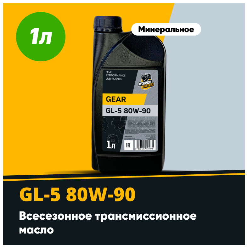 Type: differential, gearbox, reducer, transfer case, hub gears, composition: mineral, API standard: GL-5, SAE viscosity: 80W-90, gearbox type: mechanical, hypoid oil