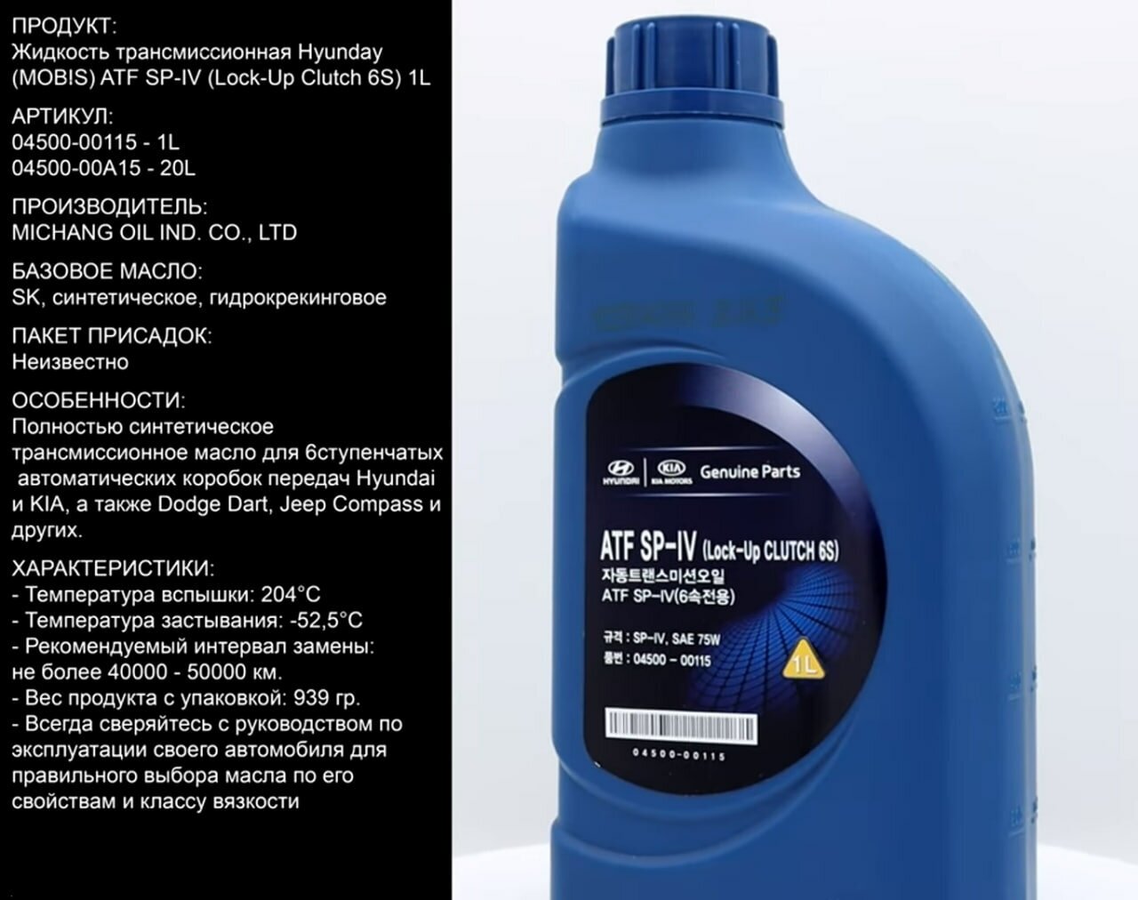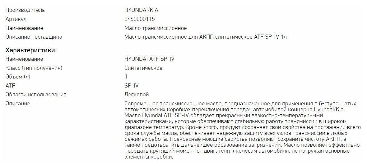 HYUNDAI SP-IV, Hyundai/Kia SP IV, Kia SP IV, 0450000115, ATF SP-IV, SP IV