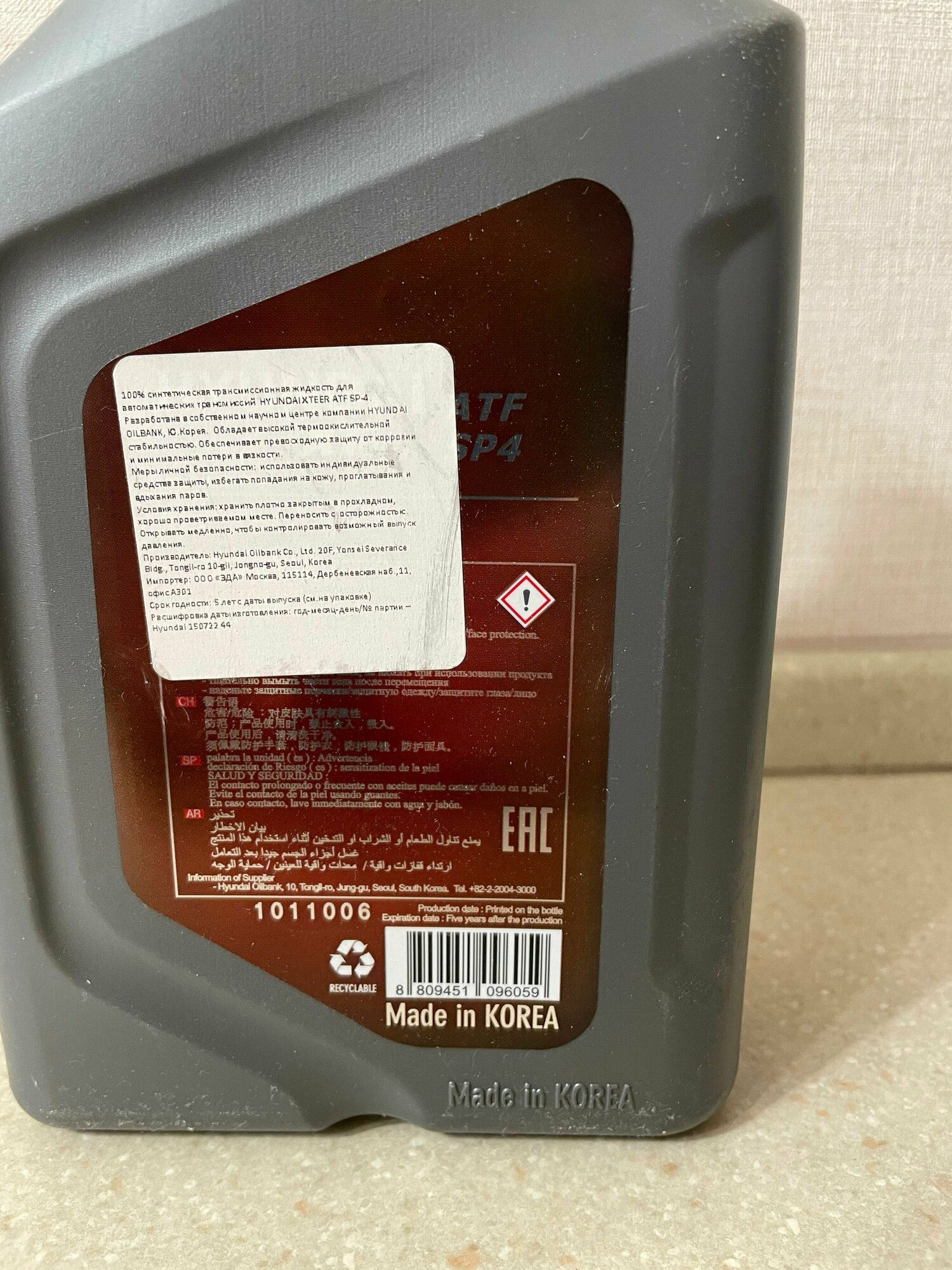 HYUNDAI SP-IV, Mitsubishi SP-IV, Toyota WS, Honda ATF DW-1, Kia, Nissan Matic Fluid D