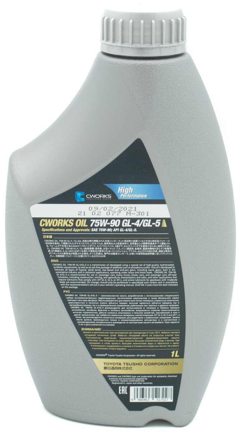 Type: gearbox, reducer, Auto parts, composition: synthetic, API standard: GL-4/5, SAE viscosity: 75W-90, hypoid oil