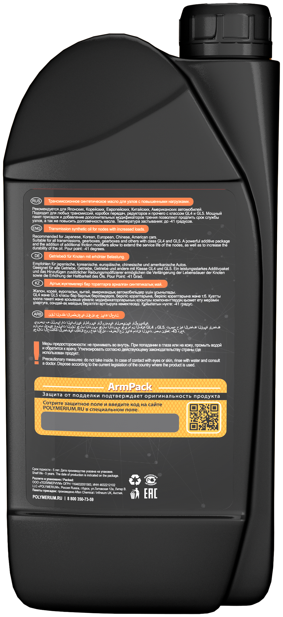 Type: gearbox, gearbox, composition: synthetic, API standard: GL-4/5, SAE viscosity: 75W-90, gearbox type: automatic, manual