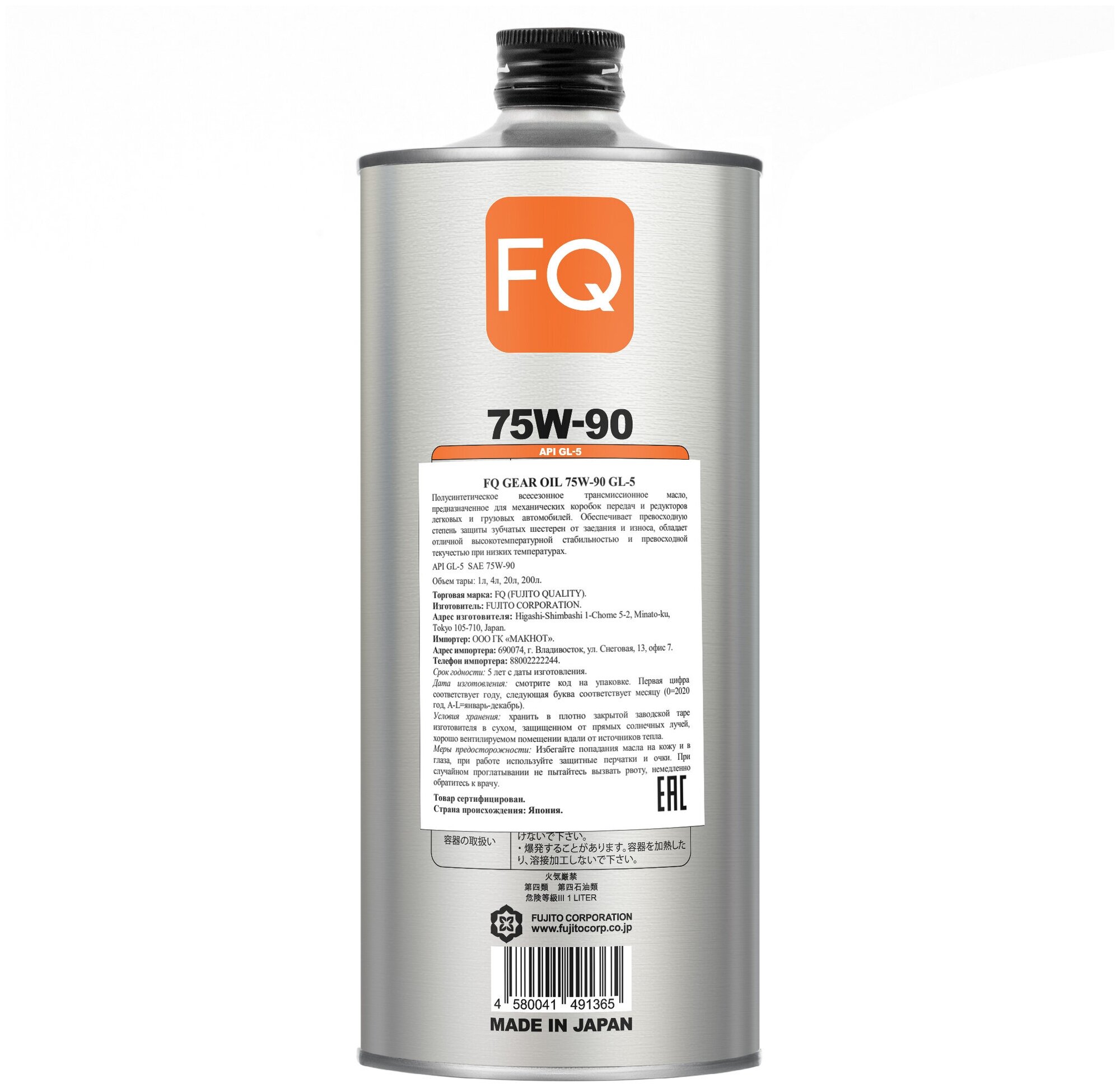 Gear oil FQ Fujito Quality GEAR OIL 75W-90 GL-5 SEMI-SYNTHETIC