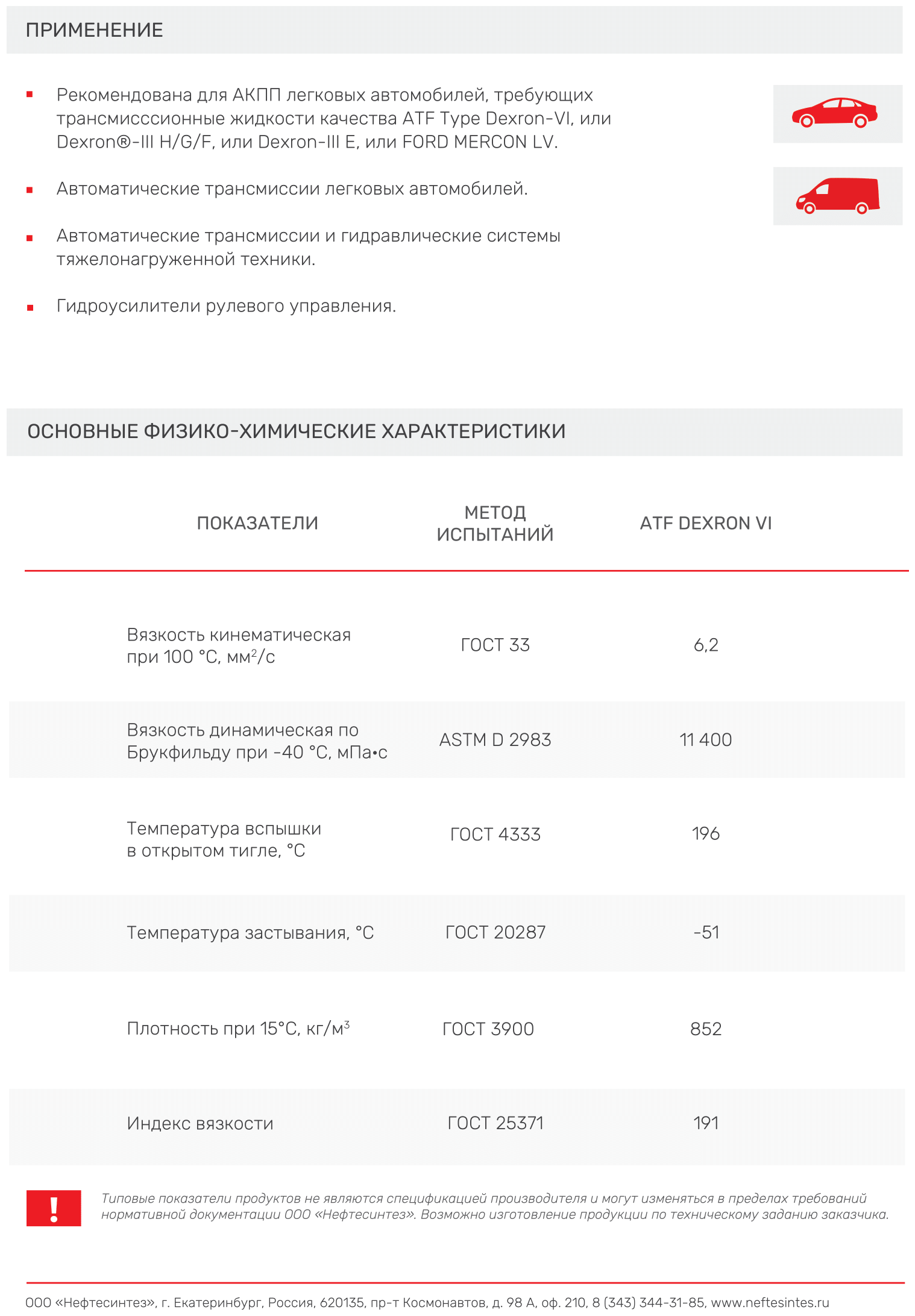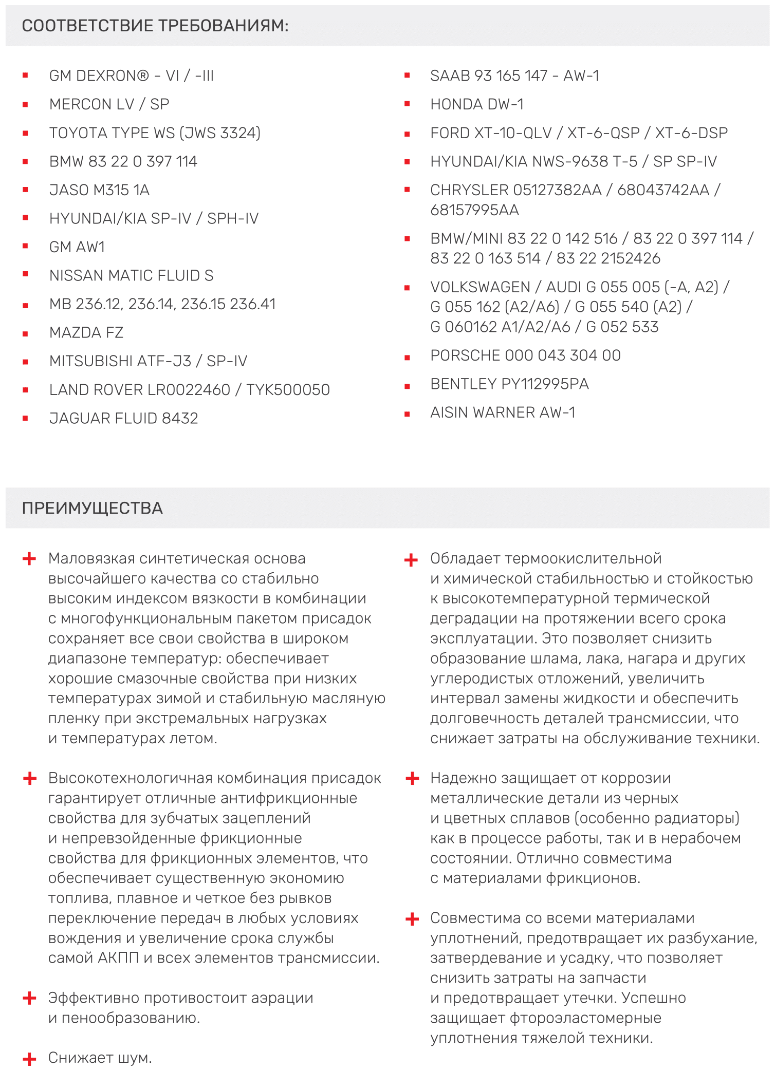 Type: gearbox, composition: synthetic, gearbox type: automatic