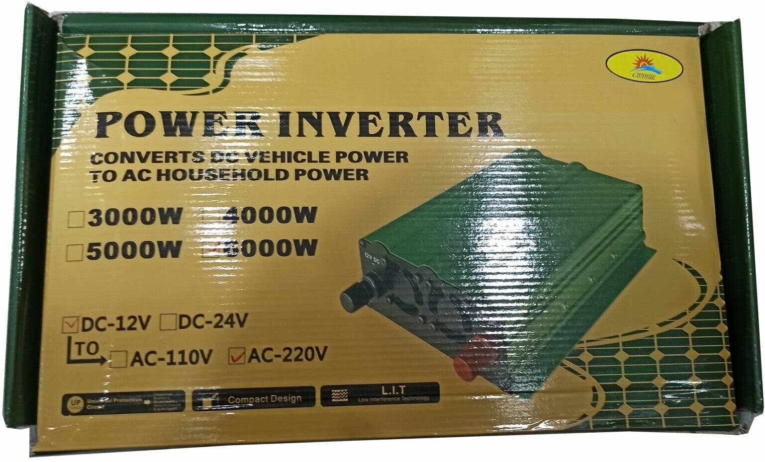 Inverter, 6000 W, signal shape: sine wave, connection to battery: terminals, input. voltage: 12 V, output. voltage: 220V, overheat protection, overload protection, overvoltage protection