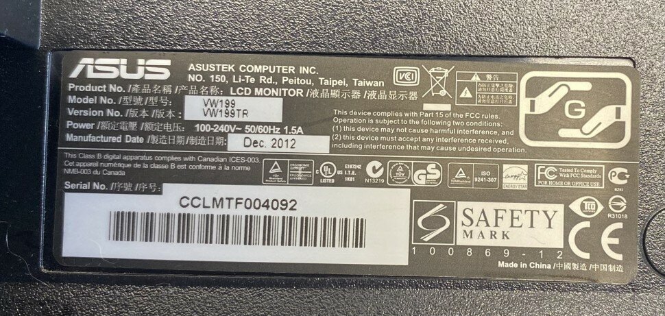 Monitor ASUS VW199 19